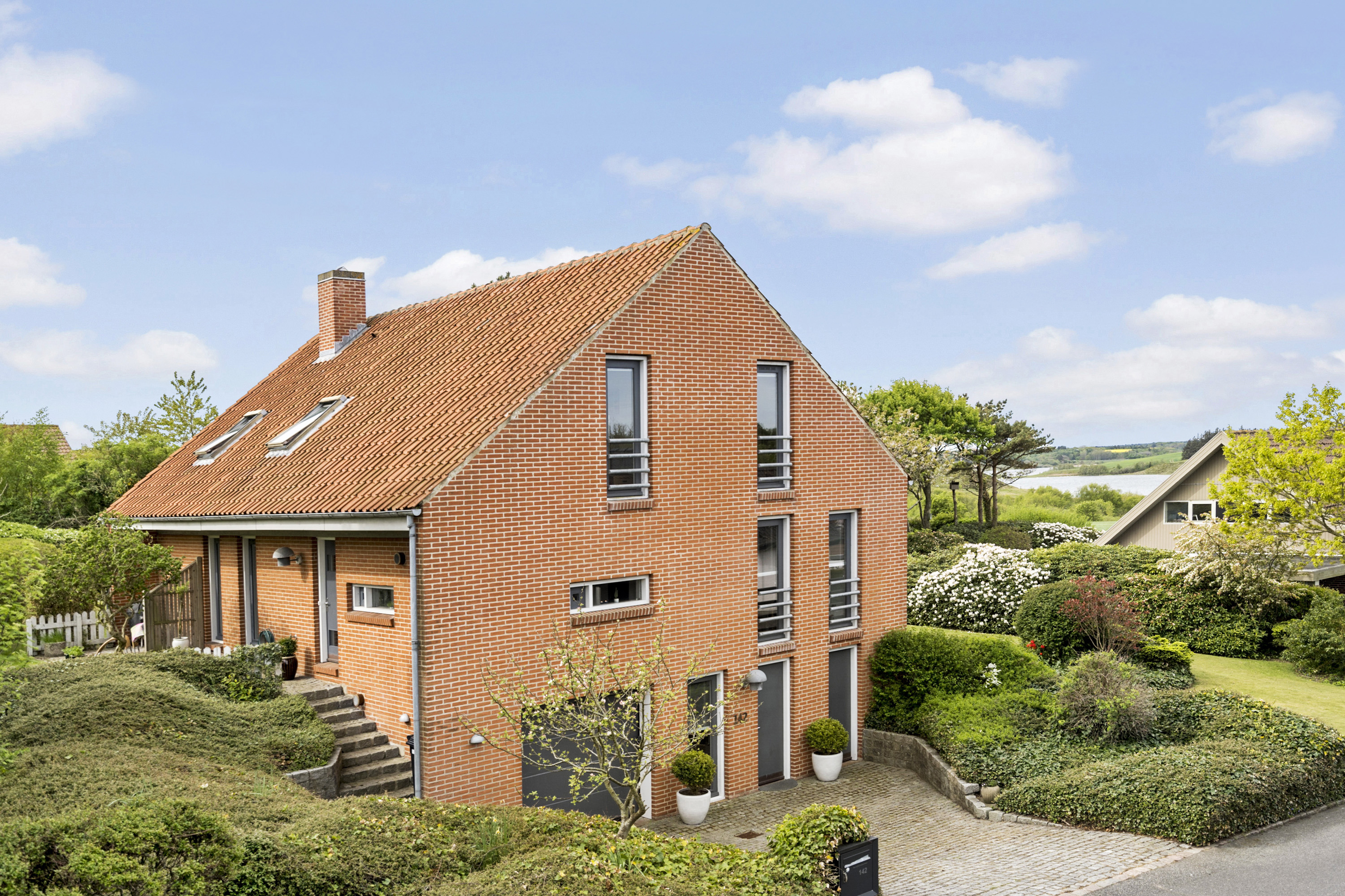 Her findes også hjemmets badeværelse med både bruseniche og badekar. Desuden et mindre værelse/kontor med en storslået udsigt over Kilen og landskabet. Underetagen er indrettet med en hall med garderobe, hvorfra der er g til 2 disponible rum og gæstetoilet.