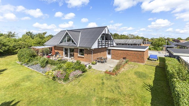 Haven er nem at vedligeholde, da den primært består af græs og smukke buske. Der er god plads til både leg og afslapning. Til boligen hører desuden en dobbeltcarport og et nyt redskabsskur, som giver ekstra opbevaringsplads.