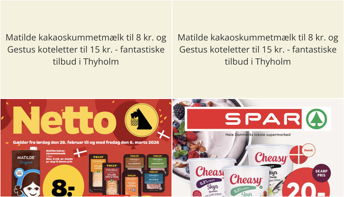 Vi har kigget på denne uges tilbudsaviser for dagligvarebutikker i Thyholm og fundet nogle fantastiske tilbud. Her er et udpluk af de bedste tilbud fra Netto og Spar.