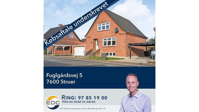 EDC Ejendomsgruppen Struer har netop underskrevet en købsaftale på Fuglgårdsvej 5 i Struer og fremhæver deres position som kommunens mest sælgende ejendomsmægler de sidste 10 år. For mere information kan du læse det oprindelige opslag.