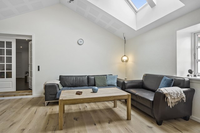 Velkommen til denne charmerende ejendom beliggende på Stokhøjvej 7, hvor moderne komfort møder naturskønne omgivelser. Ejendommen byder på en lang række attraktive funktioner og faciliteter, som gør den ideel for den moderne familie, der ønsker både plads og bæredygtige løsninger. Alrummet er lyst og indbydende med el-betjente ovenlysvinduer med klimakontrol, der sikrer optimal ventilation og lysindfald.