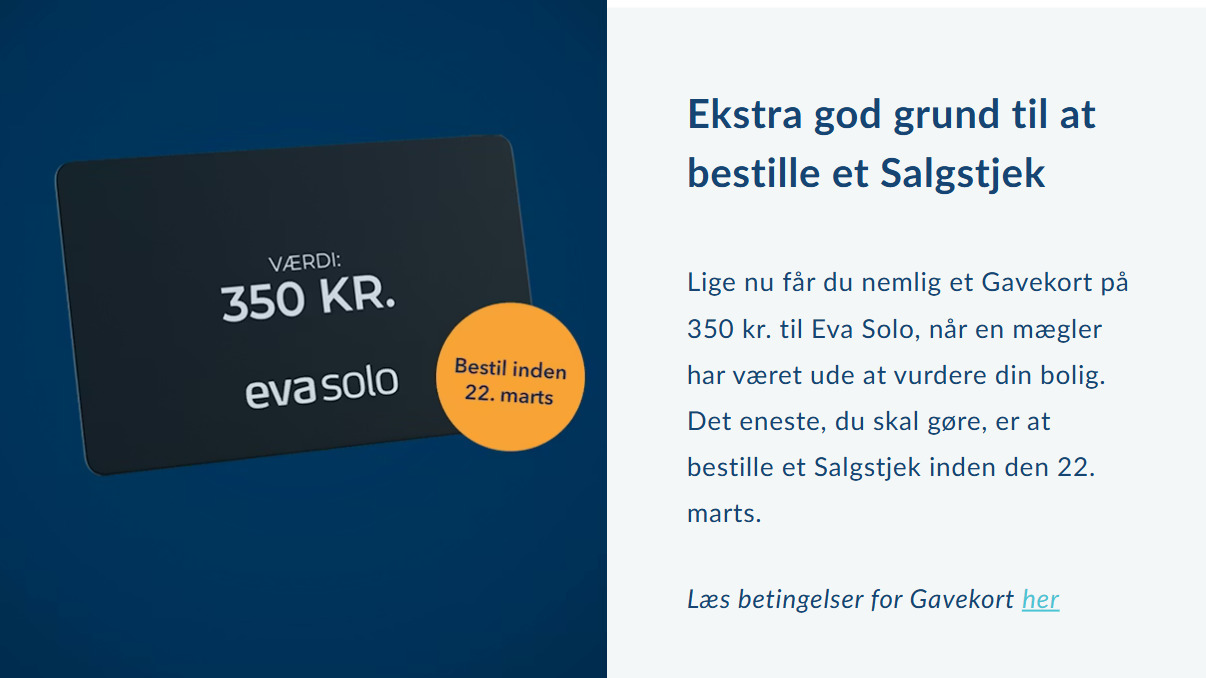 Bestiller man et salgstjek inden den 22. marts 2026, kvitterer forretningen med et gavekort på 350 kroner til Eva Solo webshop.