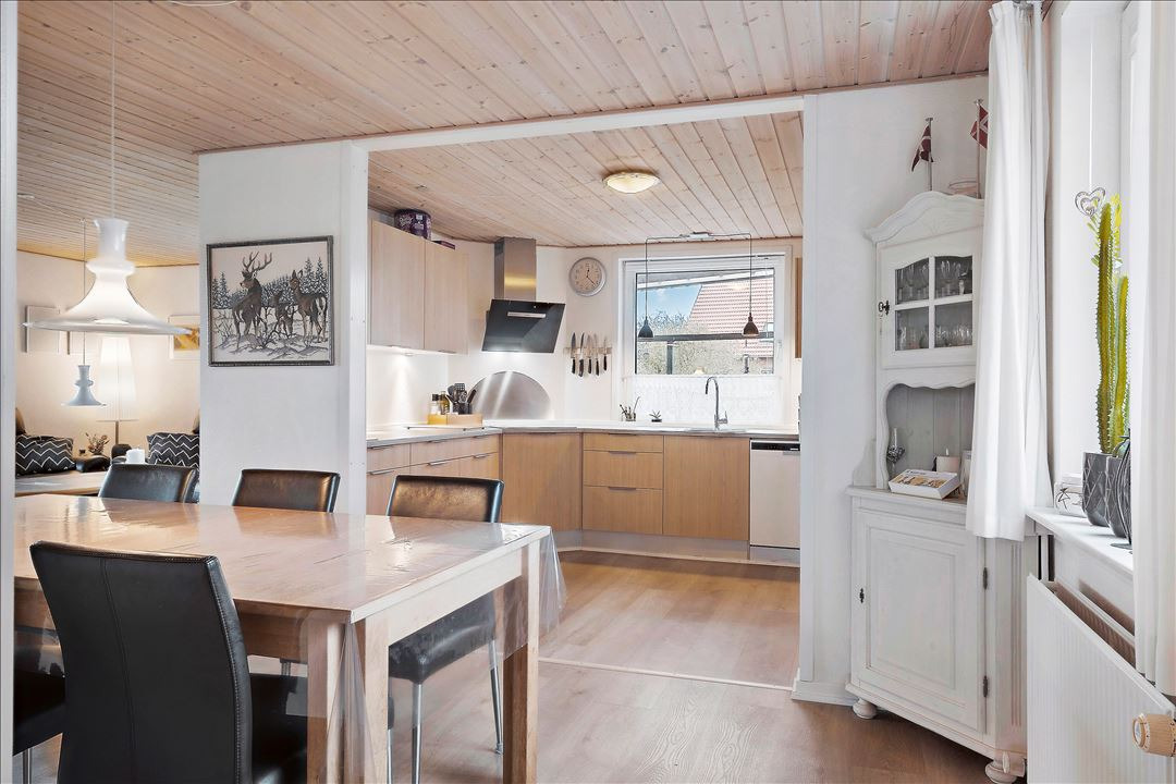 Dette hjem står lyst og imødekommende, klar til at byde en ny familie velkommen.