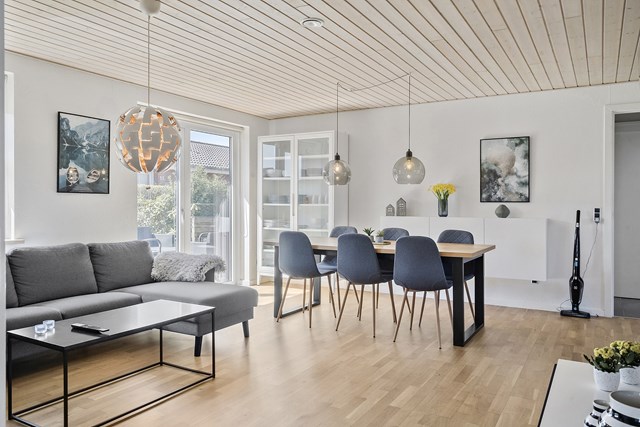 Et rigtigt dejligt hjem, hvor de 94 m2 er godt udnyttet, og hvor alt fremstår rigtig flot og indbydende. Hyggelig have med flere terrasser, hvoraf den ene er overdækket.